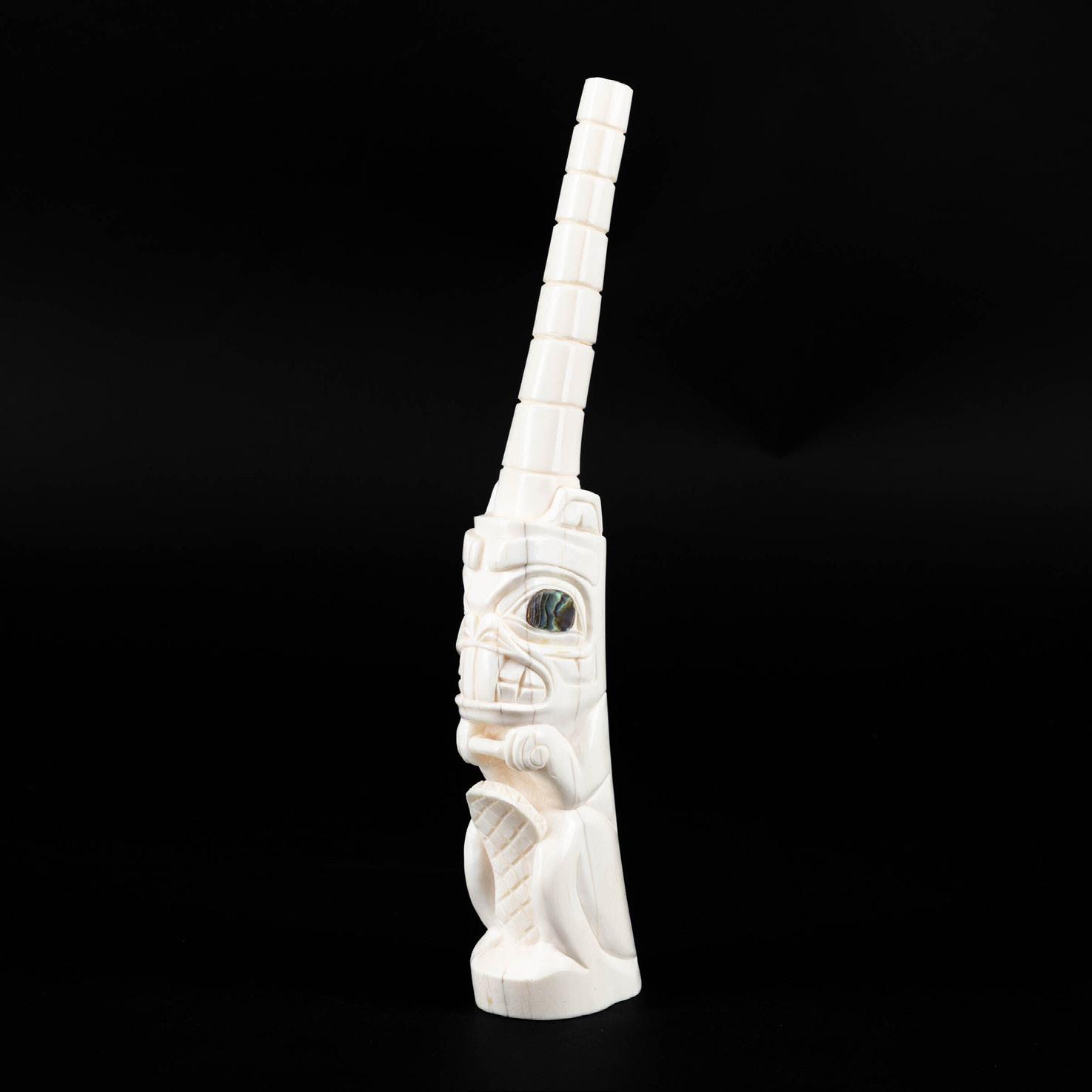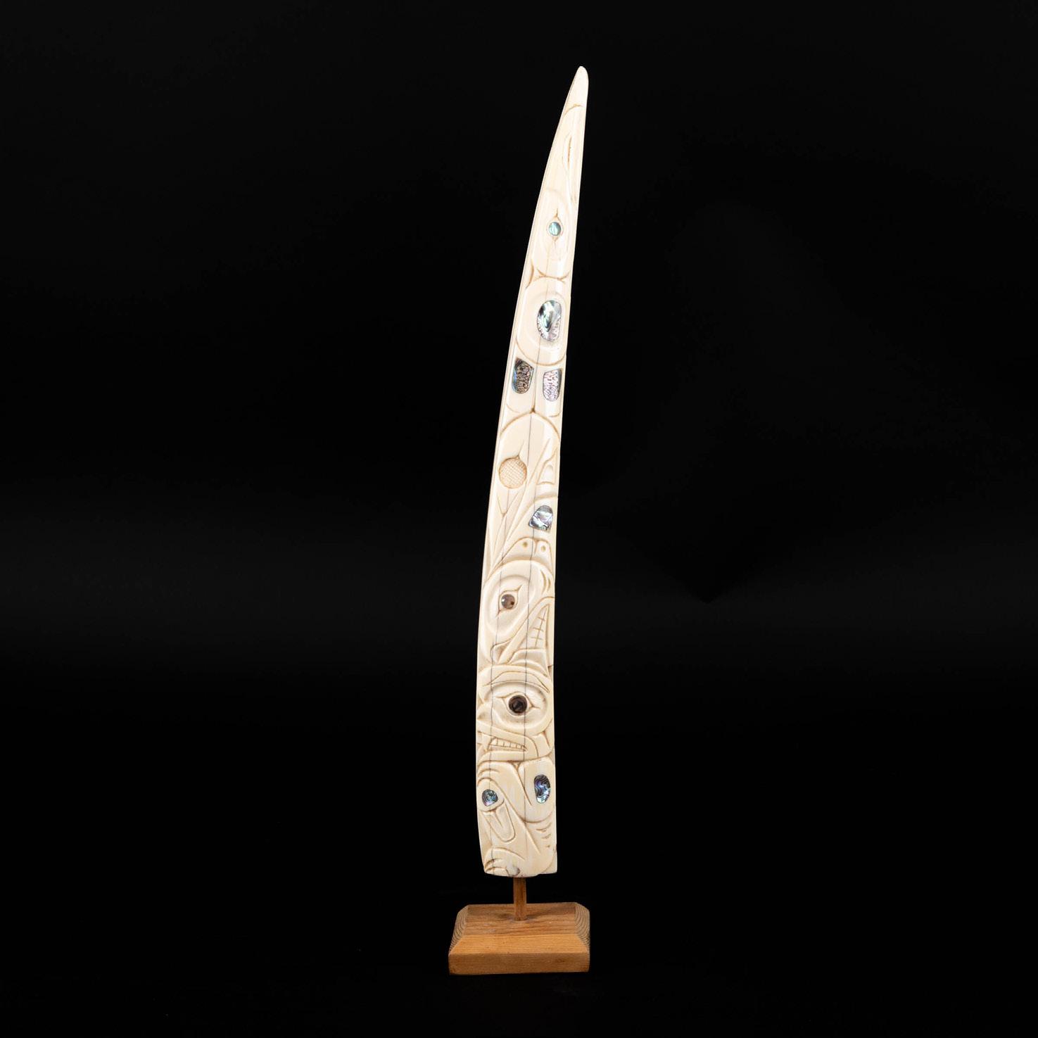 DANNY DENNIS (B. 1951), GITXSAN (GITKSAN) BEAVER WITH POTLATCH RINGS, 1980 ivory, abalone; signed “DD” and dated 10 x 1.25 x 2.5 in — 25.4 x 3.2 x 6.4 cm