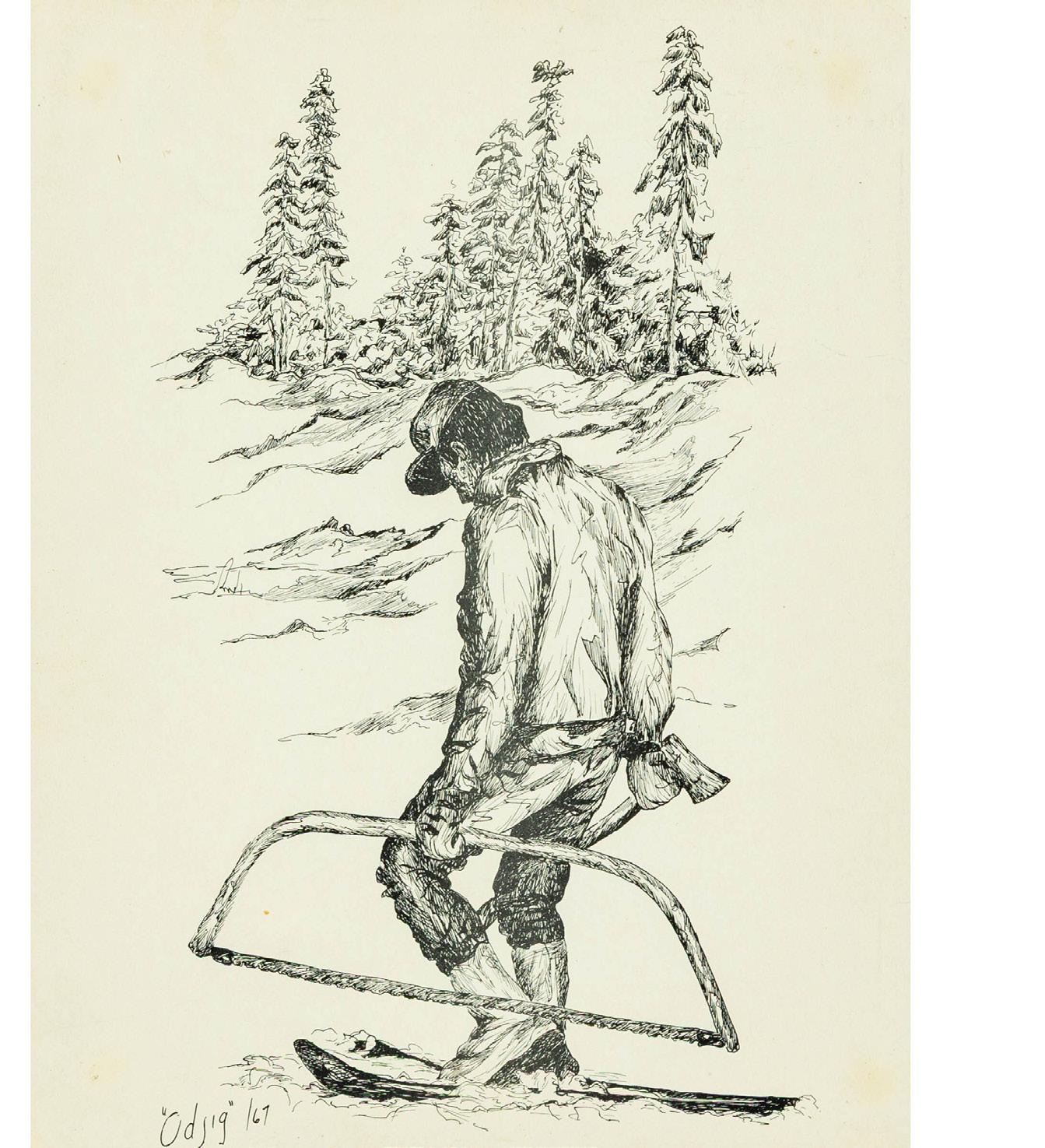 NORVAL MORRISSEAU, CM, RCA (1932-2007), ANISHINAABE (OJIBWE) BEAVER LEGEND WITH SHAKING TENT, CA . 1966 pencil crayon on gestetner paper; signed lower right; titled and dated to gallery label verso sight 8 x 13.5 in — 20.3 x 34.3 cm