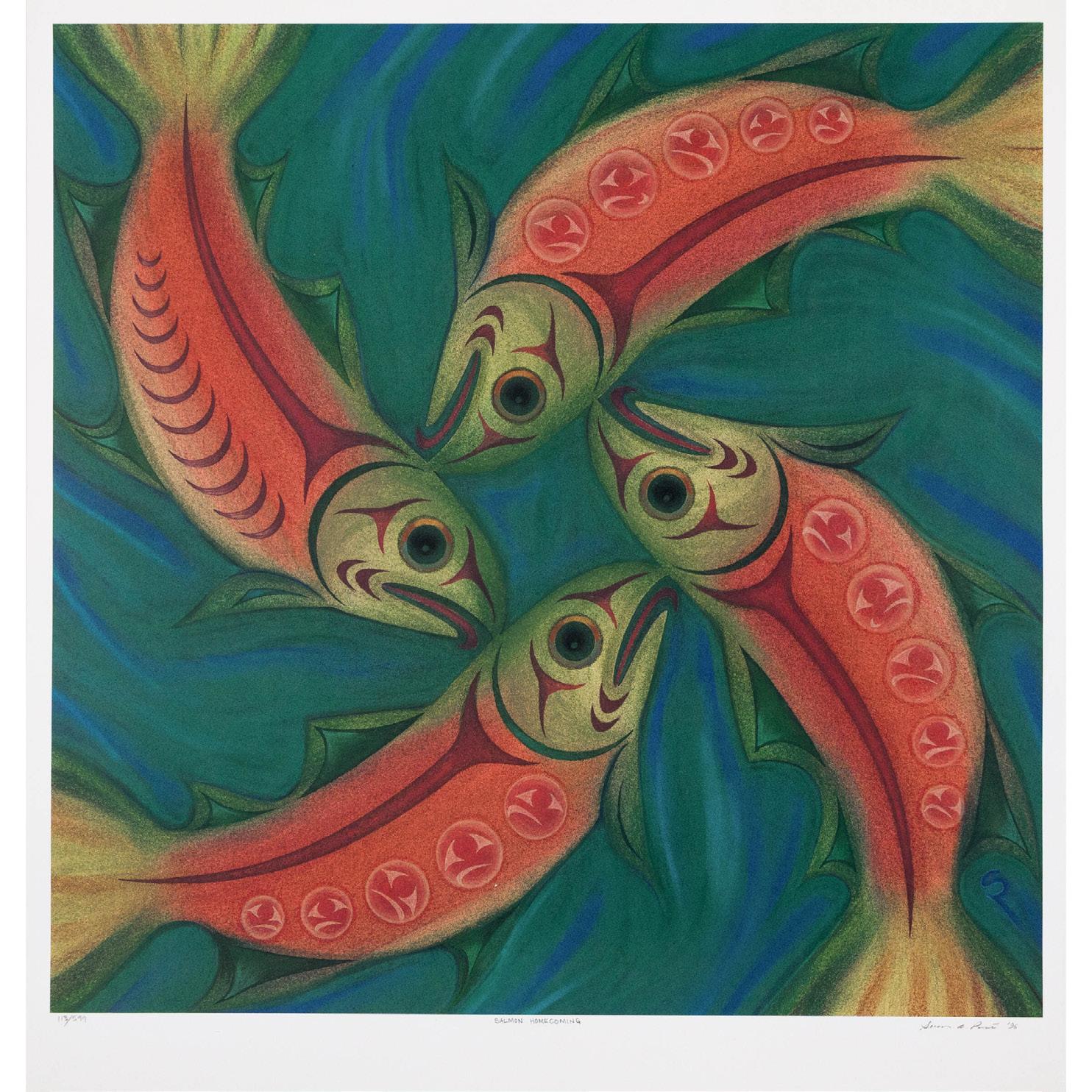 SUSAN POINT, OC, DFA, RCA (B. 1952), COAST SALISH SALMON HOMECOMING, 1996 screenprint ; signed, titled, dated, and numbered 113/599