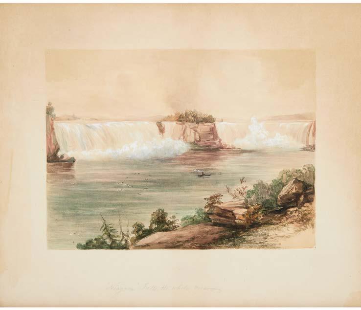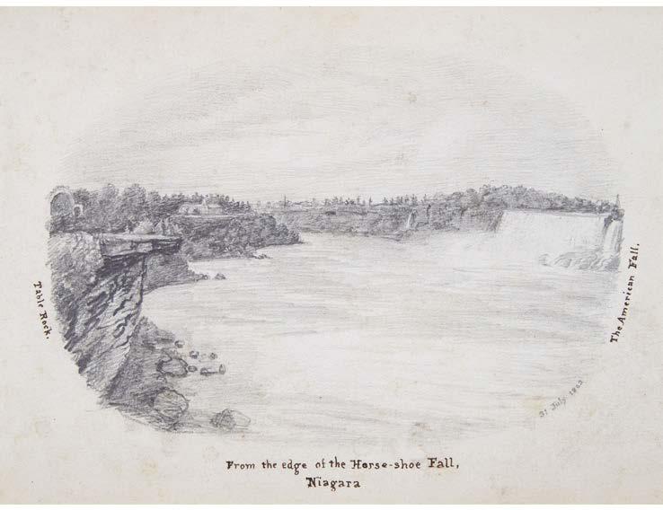 UNIDENTIFIED ARTIST (19TH CENTURY) FROM THE EDGE OF THE HORSE-SHOE FALL, NIAGARA, 1863 graphite and ink on paper titled lower centre and dated “31 July 1863” lower right sheet 4.5 x 7 in — 11.4 x 17.8 cm