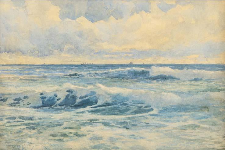 UNTITLED (SEASCAPE), 1910 watercolour on paper, laid on board signed lower left; dated verso 12 x 18 in — 30.5 x 45.7 cm