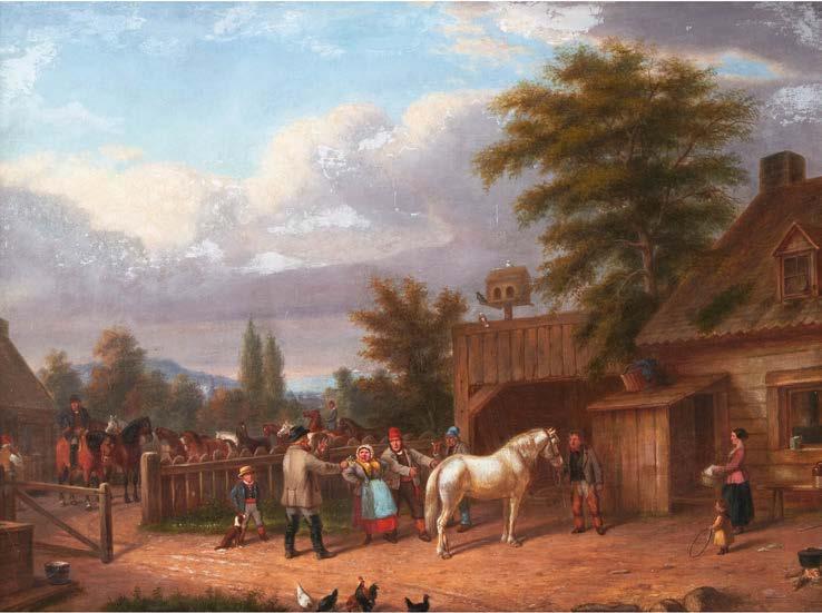 THE HORSE TRADER, CA. 1855 oil on canvas titled to nameplate
