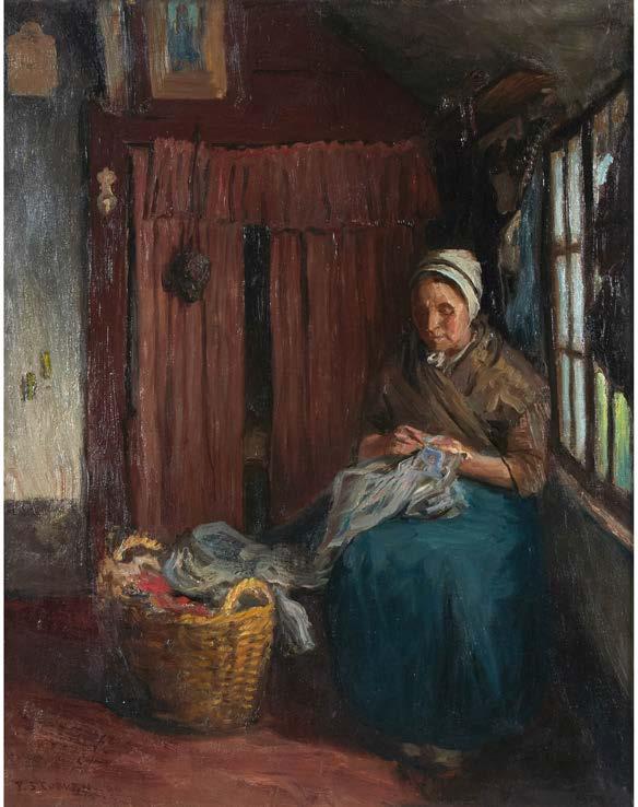 INTERIOR SCENE, WOMAN KNITTING, CA. 1903 oil on canvas