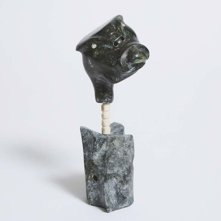 stone, antler; unsigned; accompanied by a “Canada Eskimo Art” tag indistinctly inscribed “Bookoo Pudlat / Cape Dorset / 1992 / Spirit” 13.25 x 9 x 4.25 in — 33.7 x 22.9 x 10.8 cm