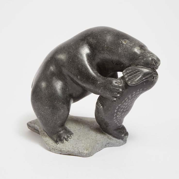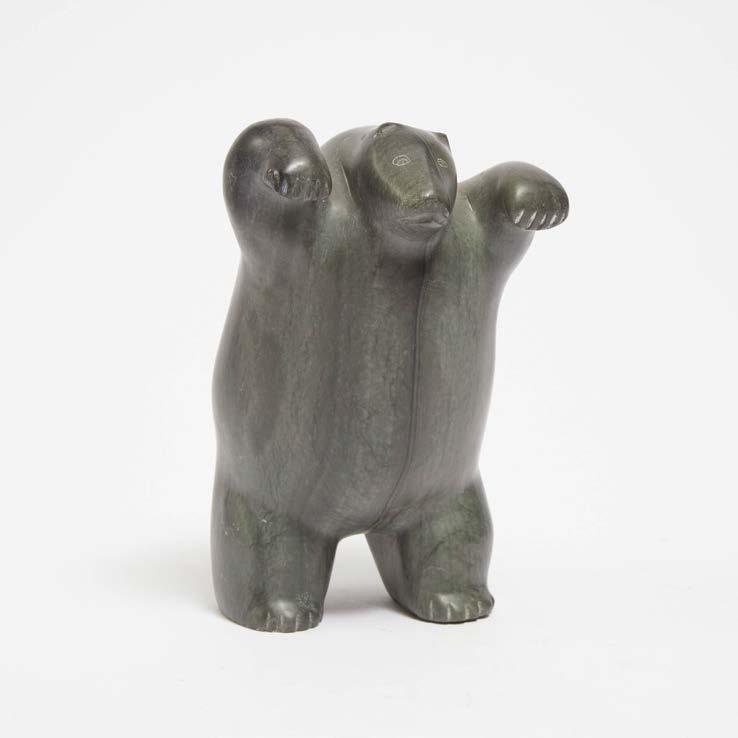 stone; signed in syllabics; accompanied by a “Canada Eskimo Art” tag inscribed “Peter Stone / Great Whale River / Standing bear”
