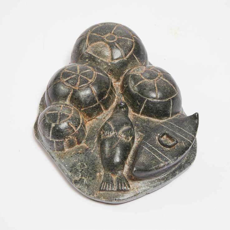 stone, ivory; signed in syllabics and initialled 13 x 9.5 x 4 in — 33 x 24.1 x 10.2 cm