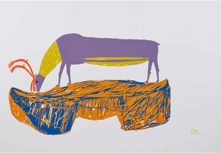 stonecut; titled, dated, and numbered 45/50; artist’s name in Roman and syllabics sheet 17 x 24.5 in — 43.2 x 62.2 cm