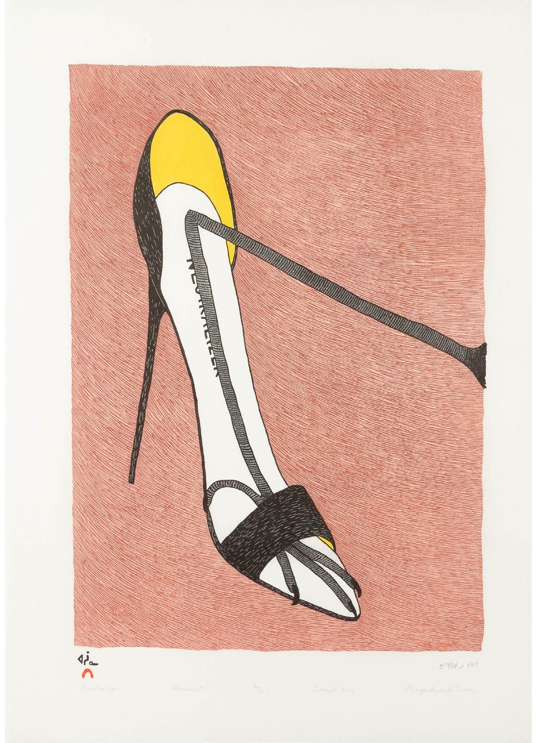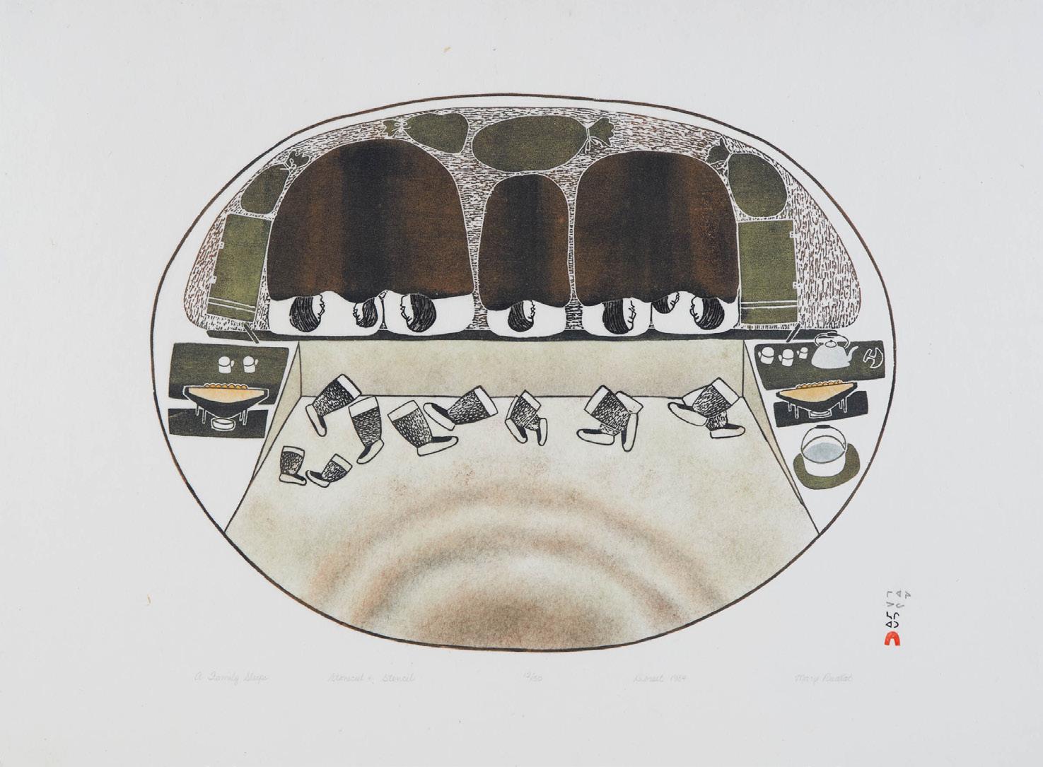 TIGUAQ (ADOPTED), 2017 stonecut; titled, dated, and numbered 6/50; artist’s name in Roman and syllabics sheet 15.5 x 20.5 in — 39.4 x 52.1 cm