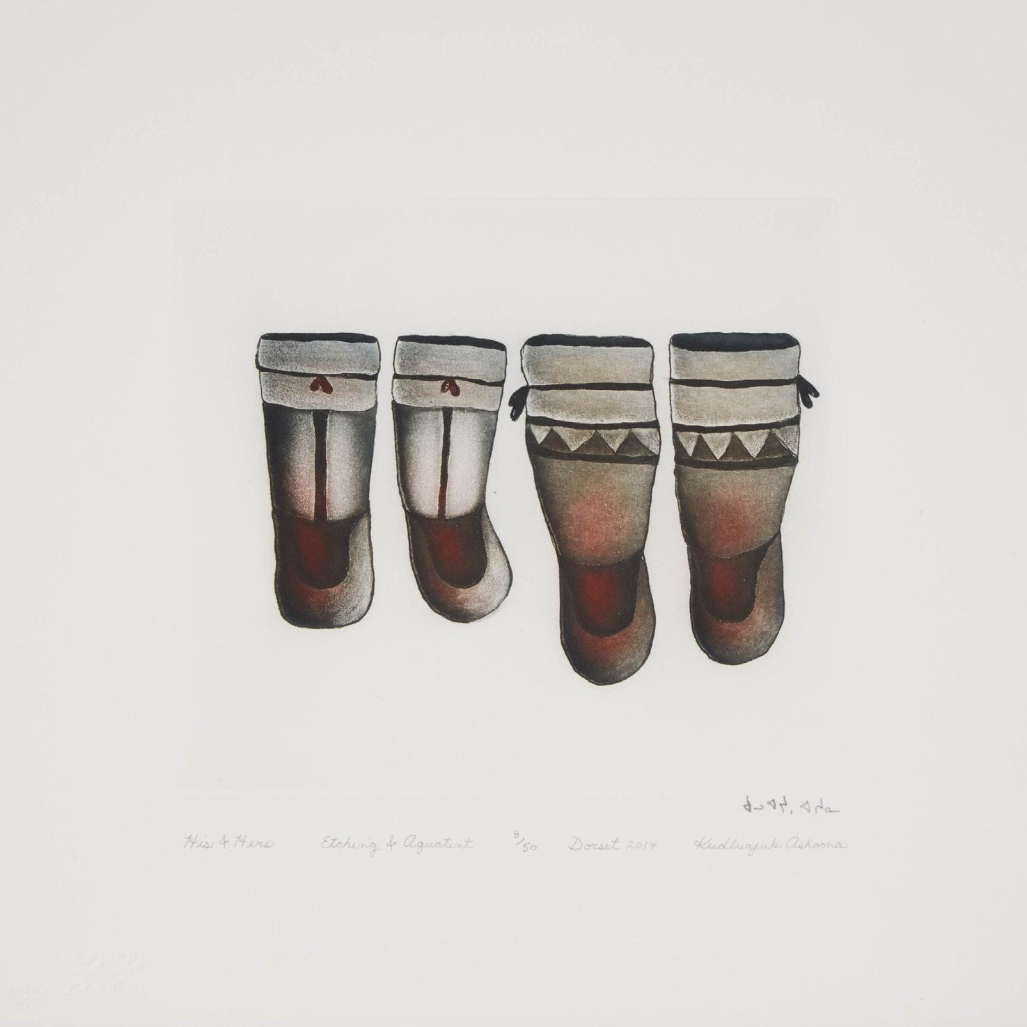 HIS & HERS, 2014 etching and aquatint; titled, dated, and numbered 8/50; artist’s name in Roman and syllabics sheet 15.5 x 15.75 in — 39.4 x 40 cm