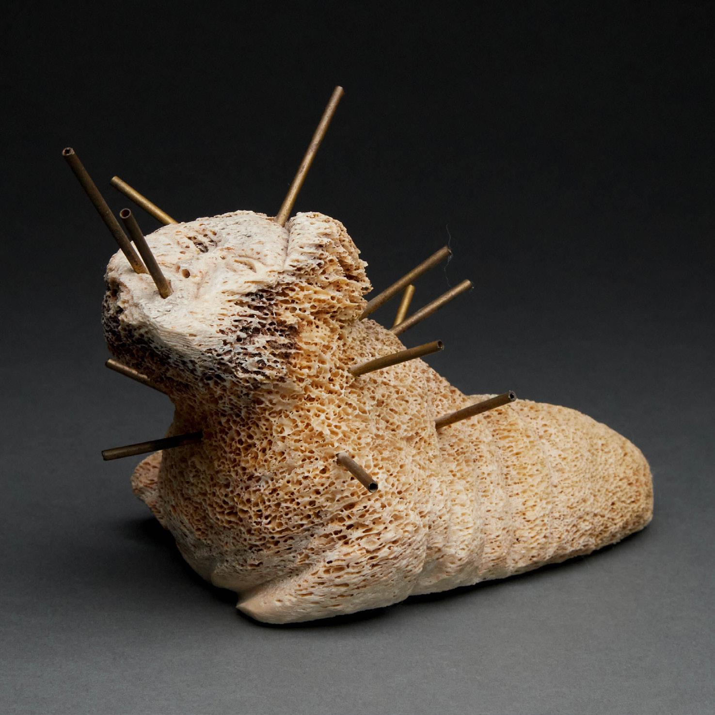 beach grass, stone, sinew, lye soap; unsigned height 6.5 in — 16.5 cm