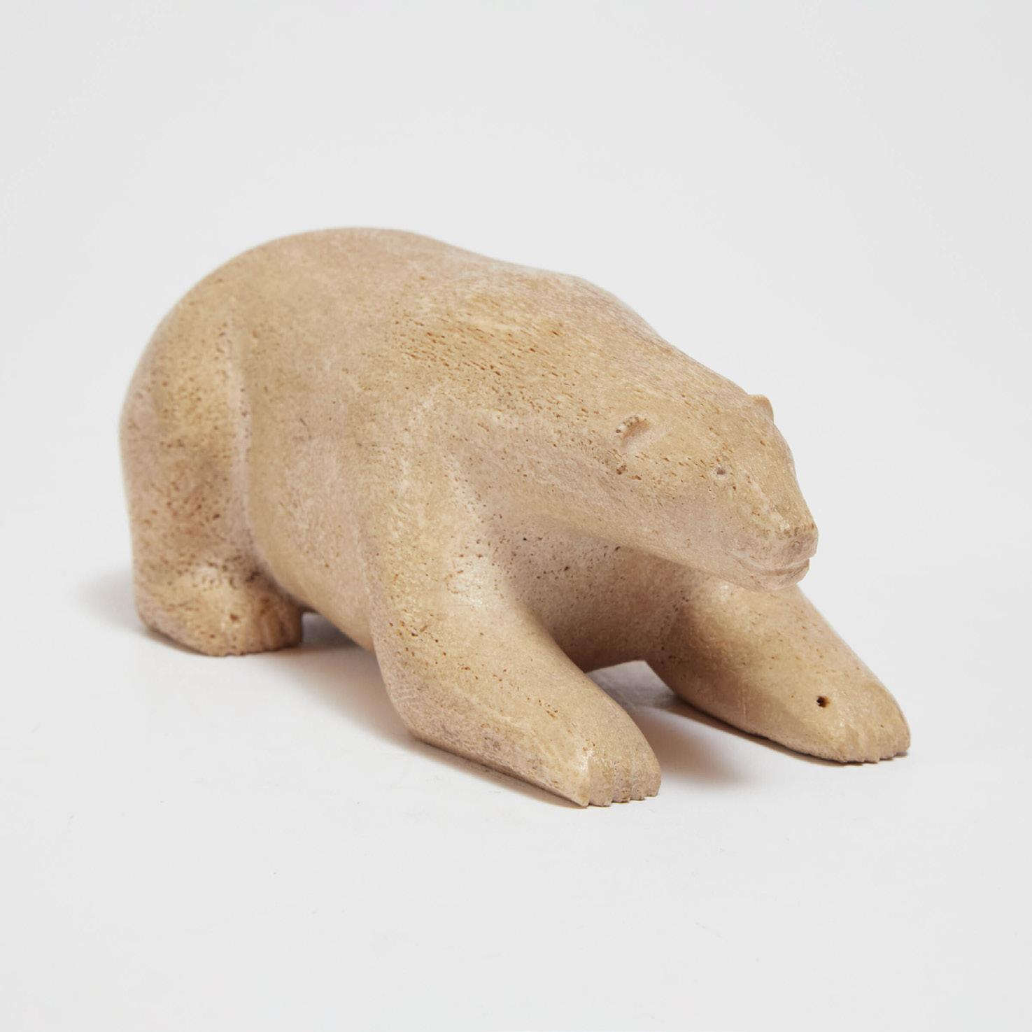 JOSIAH NUILAALIK ᓄᐃᓚᓕ (1928-2005), QAMANI’TUAQ (BAKER LAKE) THREE BEARS IN KAYAK stone; signed in syllabics