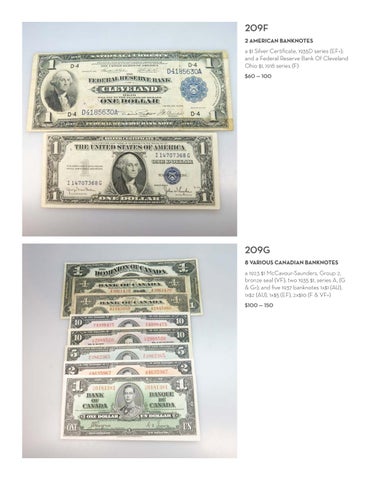 a 1923 $1 McCavour-Saunders, Group 2, bronze seal (VF); two 1935 $1, series A, (G & G+); and five 1937 banknotes 1x$1 (AU), 1x$2 (AU), 1x$5 (EF), 2x$10 (F & VF+) $100 — 150