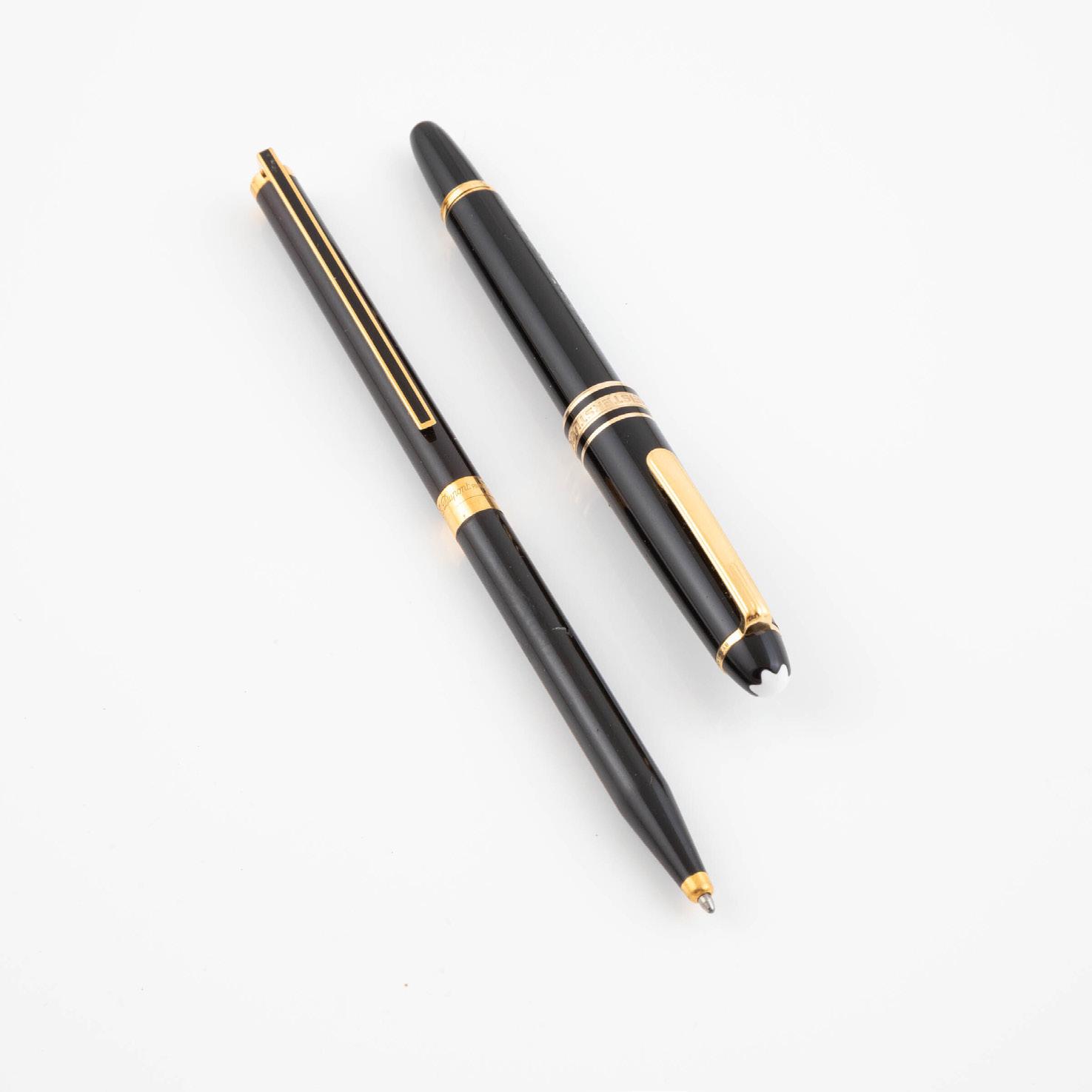 MONTBLANC MEISTERSTUCK ‘MOZART’ FOUNTAIN PEN with black resin cap and barrel; together with a St. Dupont roller ball pen