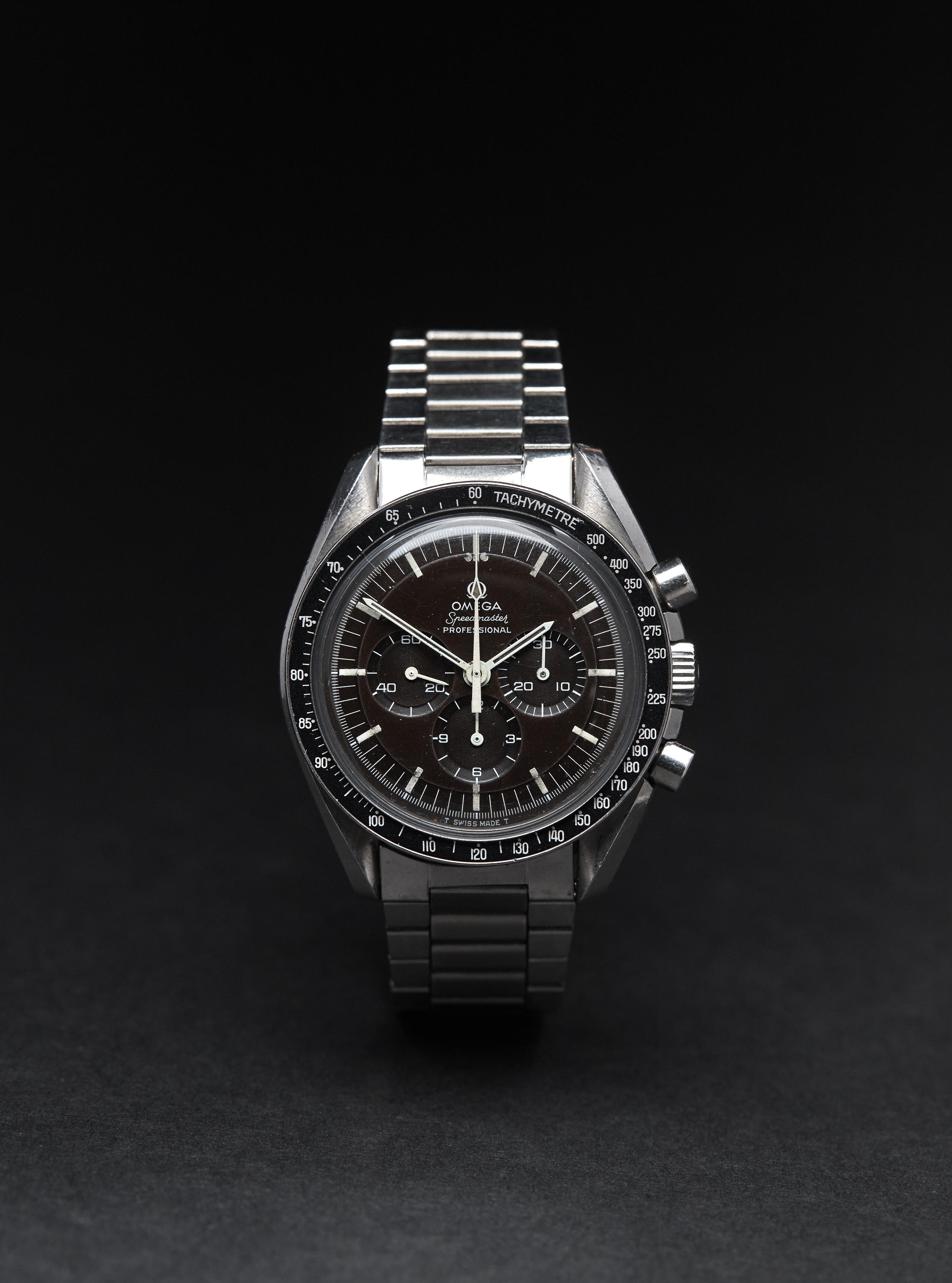 circa 1977; reference #1680; serial #5276860; 40mm; 26 jewel cal.1570 automatic wind movement adjusted to temperature and 5 positions; black dial and bezel; in a stainless steel case and strap with a deployant buckle; with the original box, papers and extra strap links, working; scratch on crystal