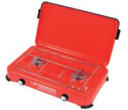 zwei Kochstellen mit stabiler Topfauflage (verchromt), einbrennlackiertes Gehäuse, windstabiler Brenner, Nennleistung: großer Brenner 1,7 kW, kleiner Brenner 1,2 kW