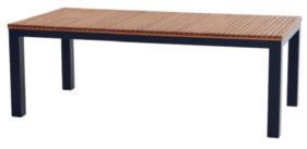 Gestell aus Aluminium pulverbeschichtet in matt anthrazit, Tischplatte aus Robinienholz FSC® 100 % geölt in natur, 35 mm stark, 160 x 90 cm oder 220 x 100 x 76 cm