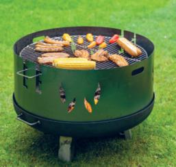 aus Stahl, unbehandelt, mit 3 stabilen Beinen, Loch für Wasserablauf, mit 2 stabilen Griffen, Materialstärke 2 mm, für Outdoor geeignet, sorgt für angenehme Lagerfeueratmosphäre, Ø 60 cm oder 80 cm