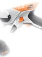 Akku-Strauchschere mit 20 cm Strauchmesser inkl. Messerschutz und 12 cm Grasmesser mit Schutz zum Schneiden von Rasenkanten. Mit Akku AS 2 (28 Wh, 10,8 V), Ladegerät und Transporttasche mit Ösen zur Wandmontage. Werkzeugloser Messerwechsel, mit Ladezustandsanzeige.