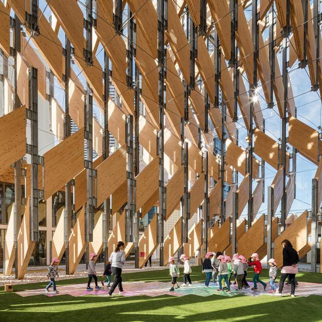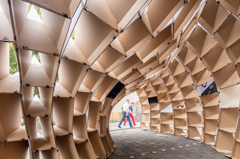 Structure: The circular pavilion is made of interlocking wooden pieces that create " a sublime tessellated interior" throughout the space.