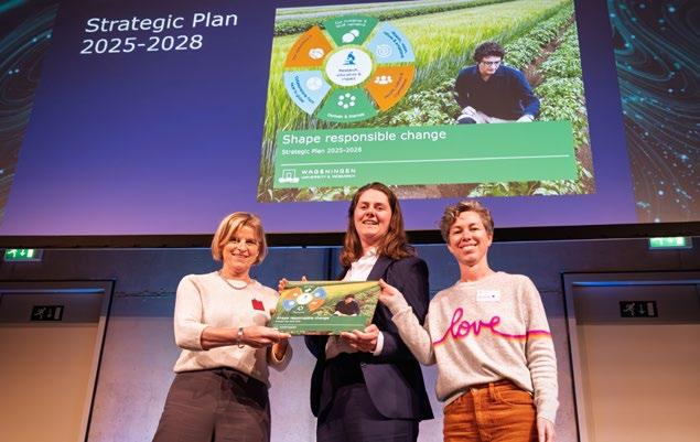 ‘De kennis van Wageningen University & Research is urgenter dan ooit. In een wereld waarin voedselzekerheid onder druk staat door geopolitieke spanningen, en waarin klimaatverandering en biodiversiteitsverlies grote uitdagingen vormen, is er groeiende behoefte aan wetenschappelijk onderbouwde oplossingen. Wageningen levert die kennis –niet alleen om deze problemen te helpen verminderen, maar ook om er op een slimme manier mee om te gaan.