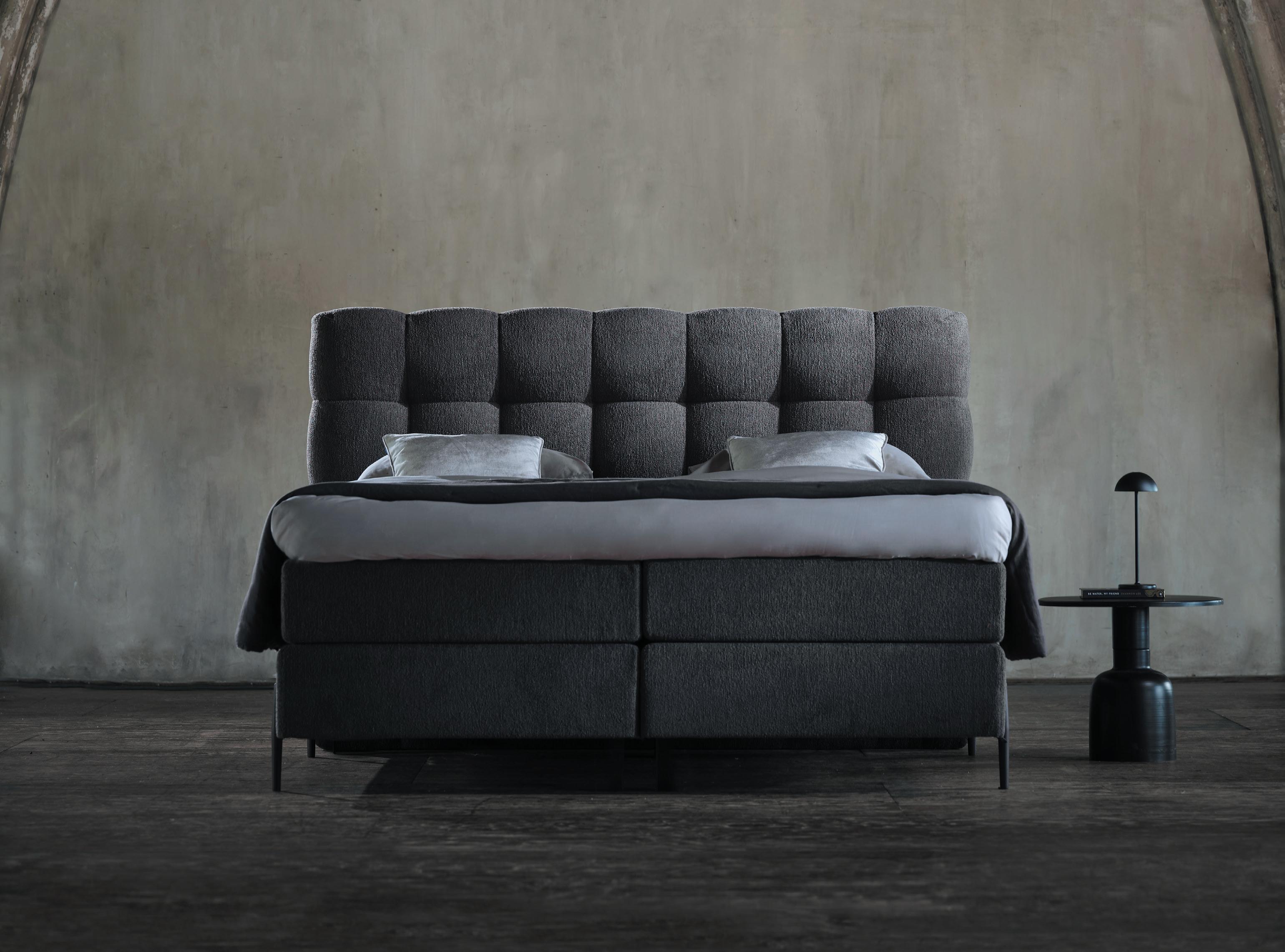 Een mooie boxspringset voor een aantrekkelijke prijs. Verkrijgbaar in drie trendy en tijdloze grijstinten, met slanke zwarte pootjes en een modern hoofdbord. Kies het ligcomfort van je matrassen, afgewerkt met een comfortabele topper en je zult heerlijk slapen!