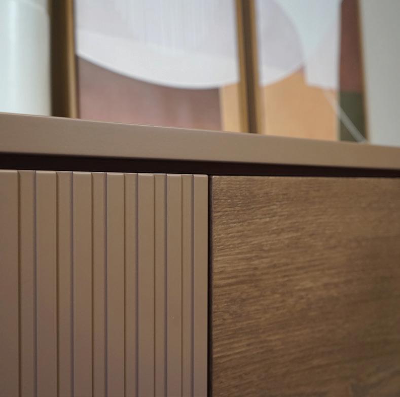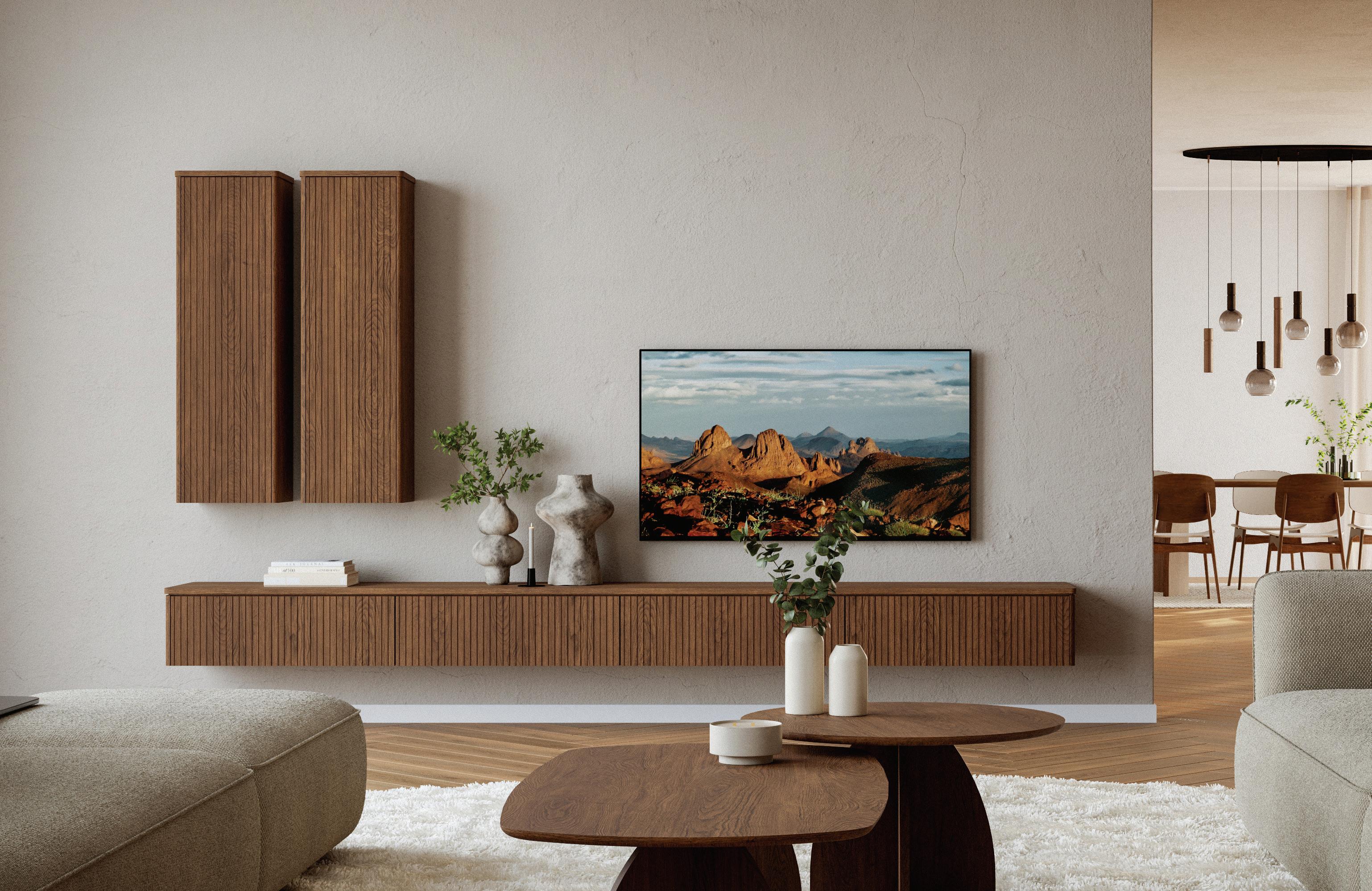 De nieuwe collectie wandmeubelen wordt gemaakt door het samenvoegen van units. Hierdoor zijn de mogelijkheden zeer uitgebreid. Kies bijvoorbeeld voor open vakken, gladde of geribbelde fronten. Zo stel je jouw tv-meubel of dressoir zelf samen. De collectie is samen te stellen in veel eiken en mdf lakkleuren.
