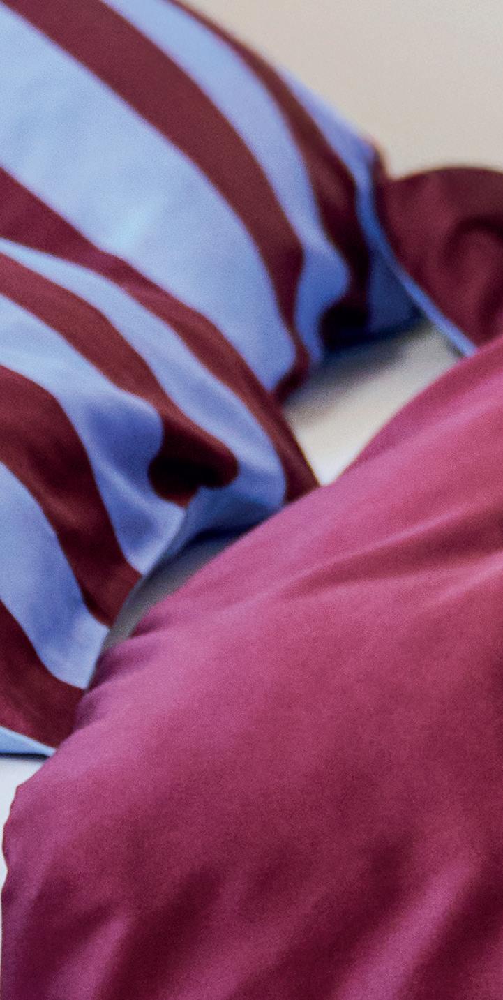 Ontdek de nieuwe kleur Burgundy. Exclusief ontworpen met kleurenvisionair Teklan. Deze samenwerking, Characters by Teklan, is een ode aan design, kleur en karakter. Combineer ook met het bijpassend bedtextiel met een tijdloos streeppatroon.
