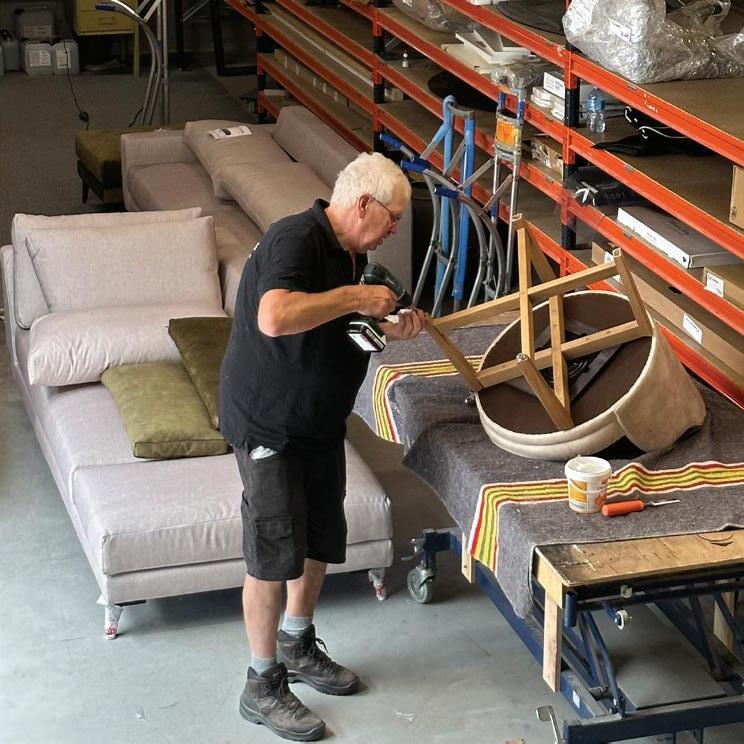 In onze werkplaats worden meubels klaargezet, gemonteerd en van vilt voorzien. Daarnaast worden ook de reparaties uitgevoerd in onze werkplaats.