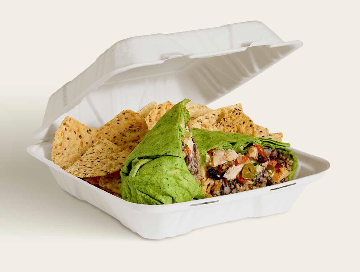 Produced with natural fibers from an annually renewable resource. These containers are strong, stackable, and insulated for hot or cold foods.
