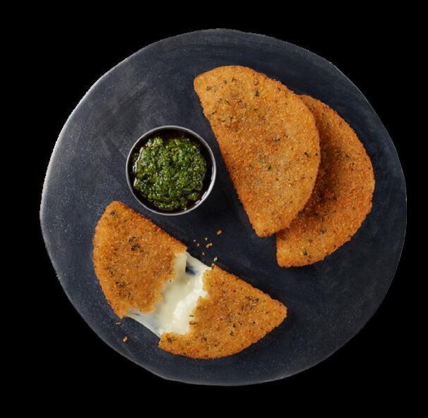 Half moon of whole-milk mozzarella cheese in an oregano, romano cheese, and garlic Italian breading.