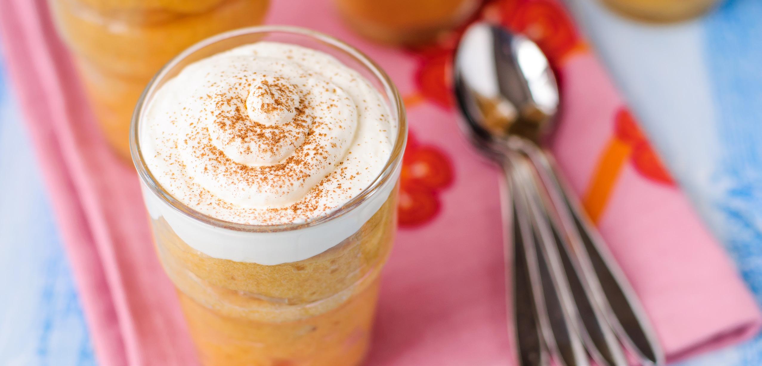 Delightful vanilla pudding swirled with pumpkin and spice cookies.