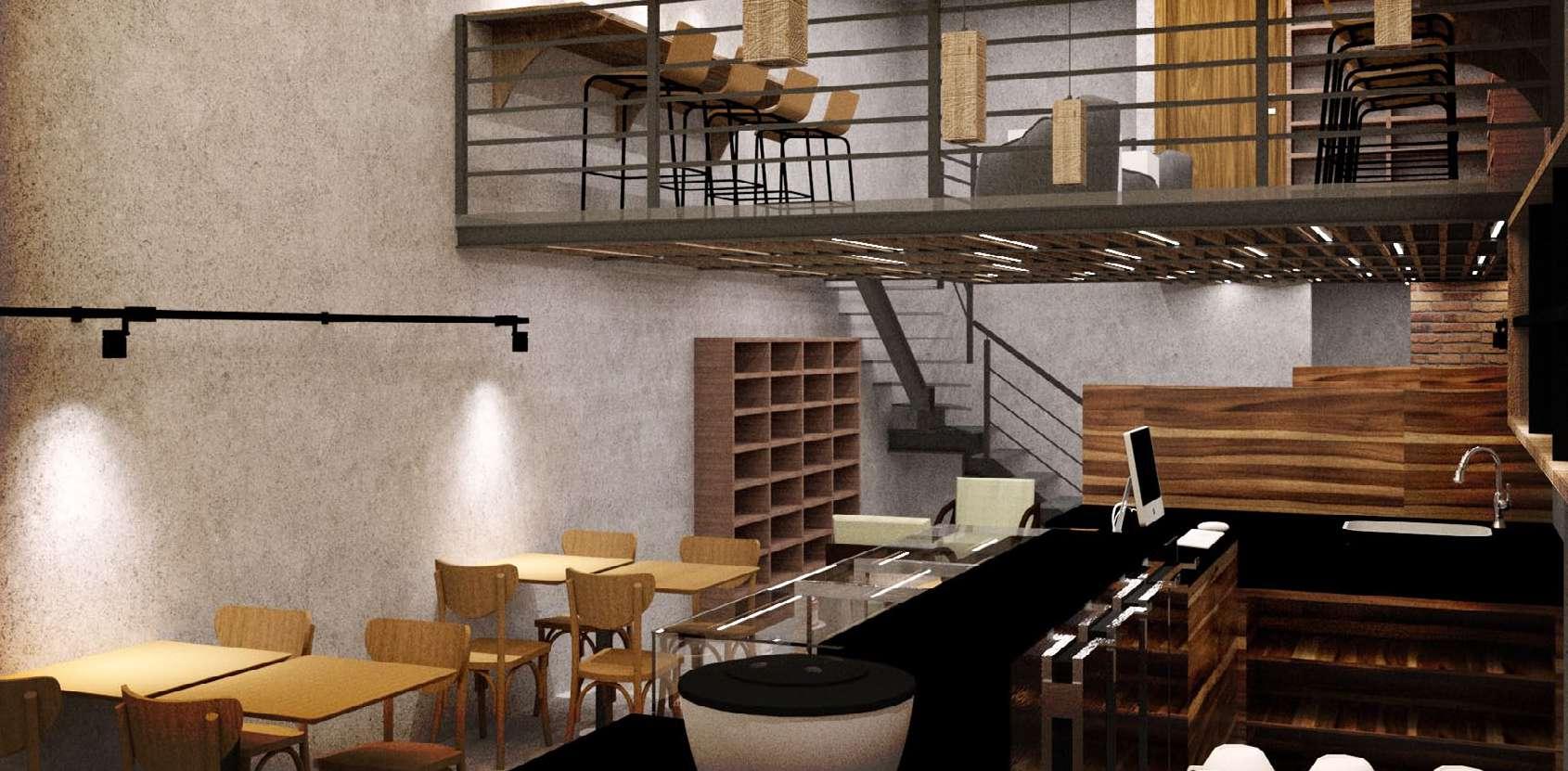 Projeto fictício com a proposta da reforma de uma loja de shopping visando a criação de uma cafeteria.
