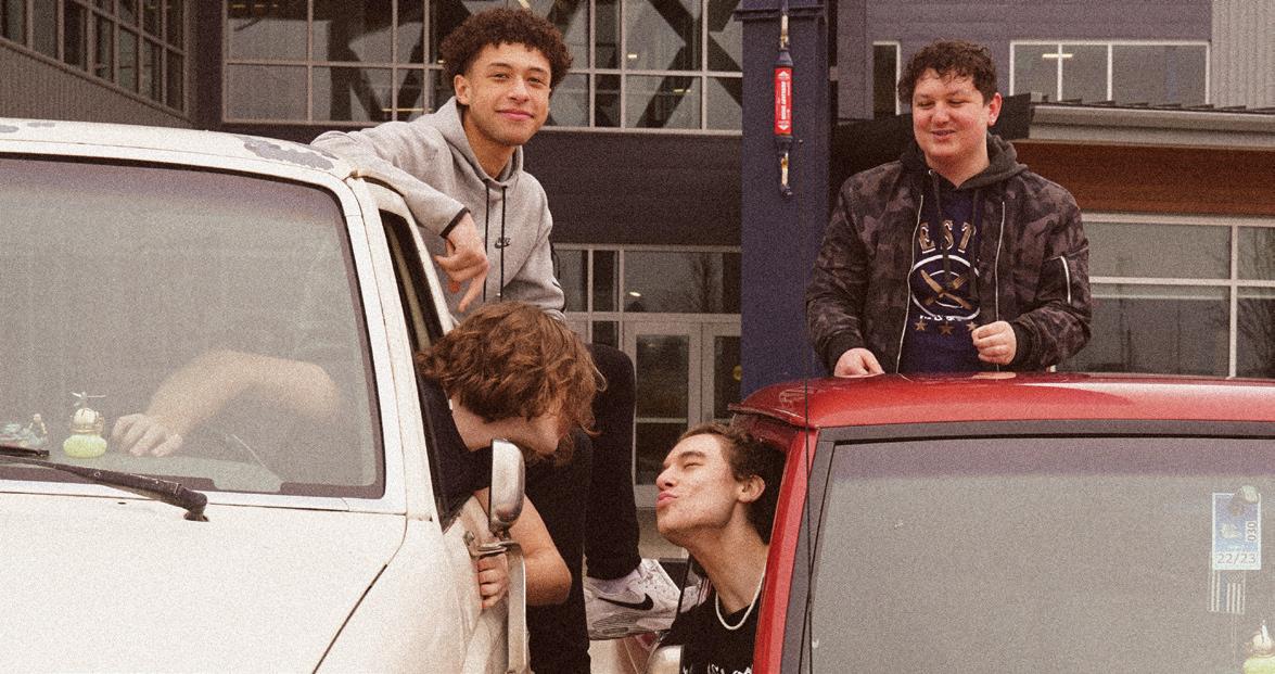 The four seniors, Aiden Terkildsen, Laik Gregory, Jaimeson Hogan, and Noah Sanders, met in Mrs. White’s third grade class in elementary school. Normally, they hangout at Terkildsen’s house playing video games or watching movies together. Lately they’ve gone to events together, like seeing the new Avatar movie. Their favorite memory recently was Sanders having to eat the “Blazing Wings” from Buffalo Wild Wings after losing in their fantasy football league. After they all graduate, the group is discussing the possibility of going on a trip together to celebrate graduating.