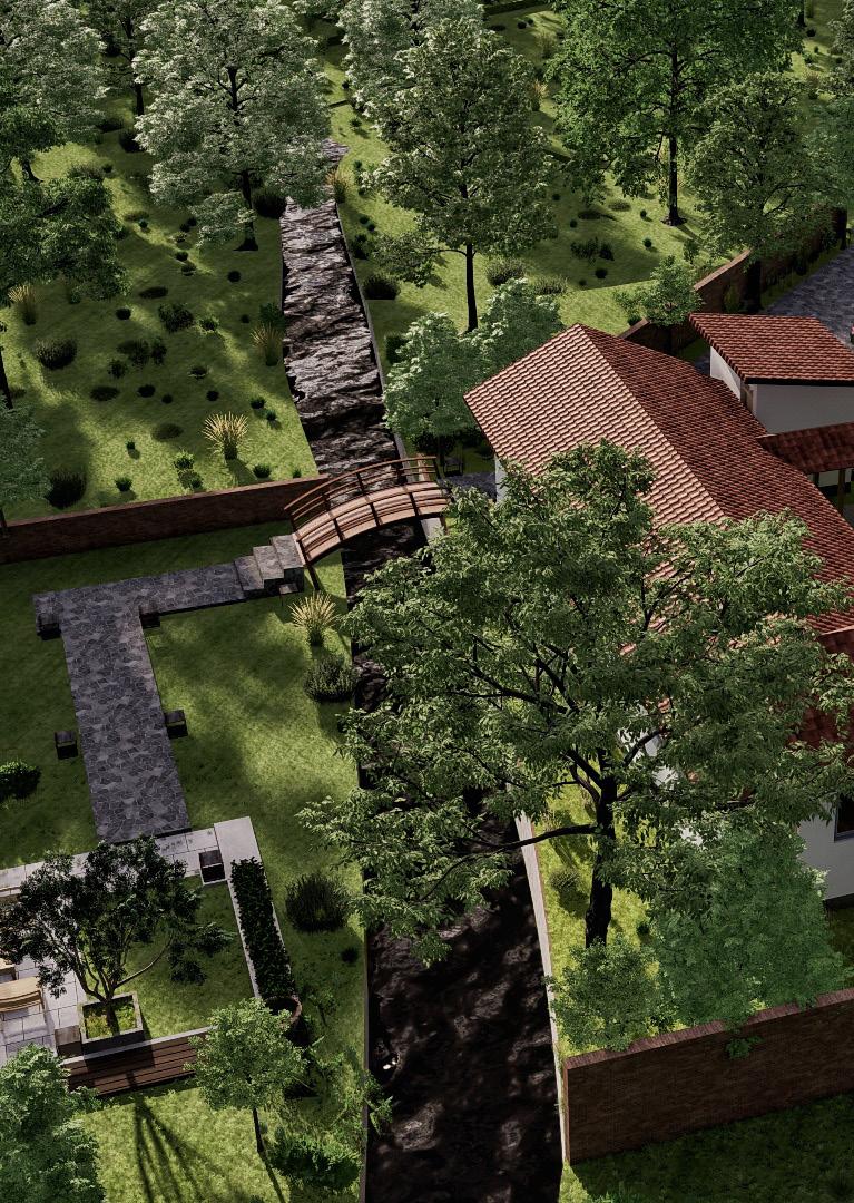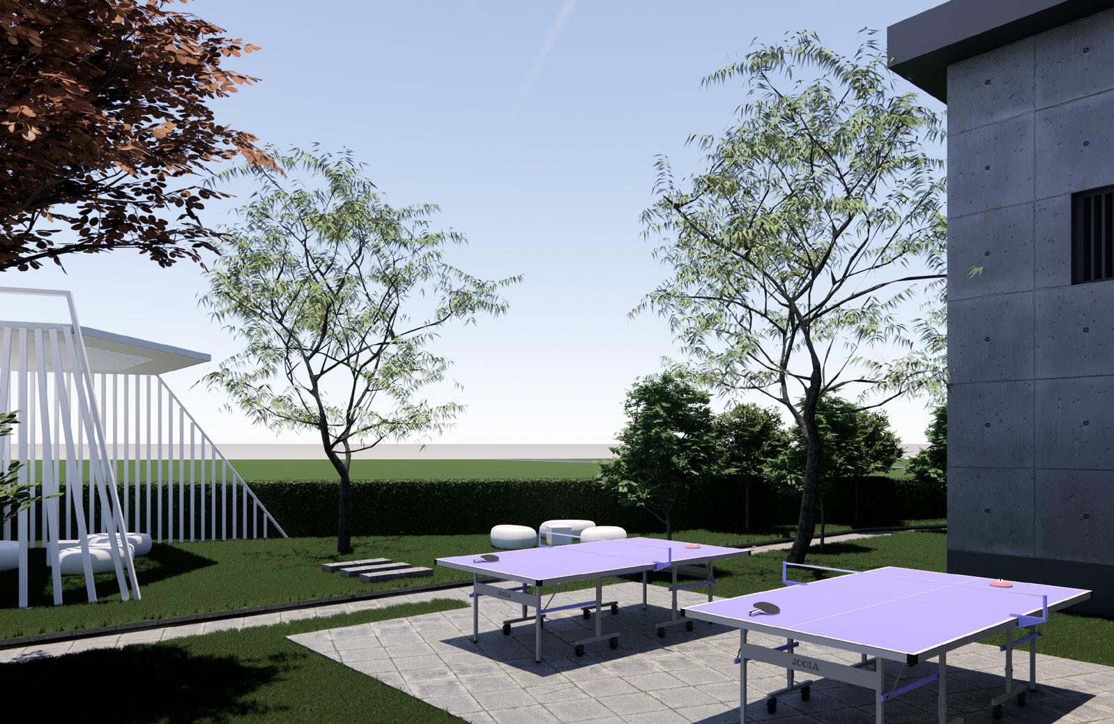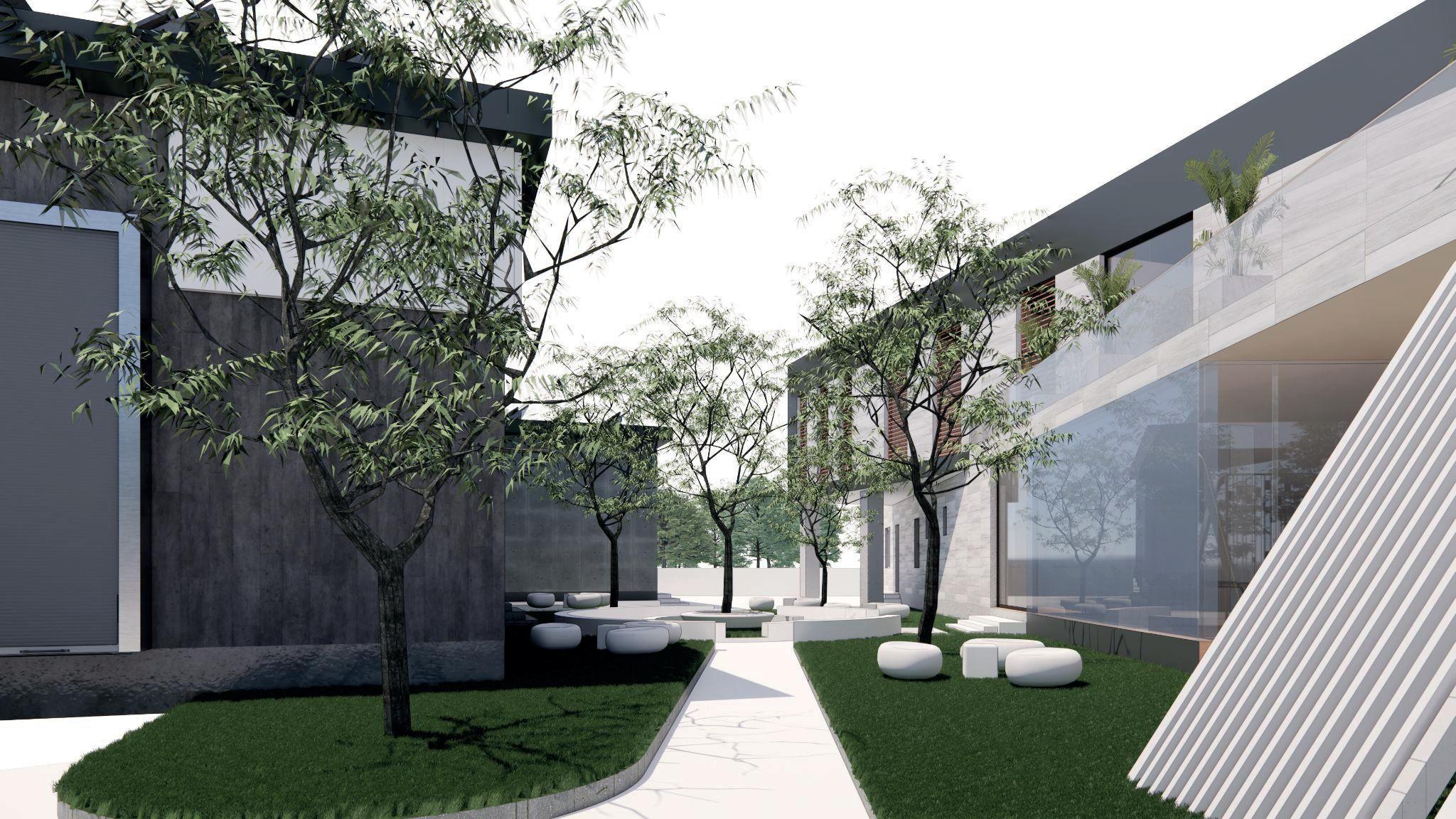 For this purpose, the central portion is treated with an open green space representing a sense of forest.