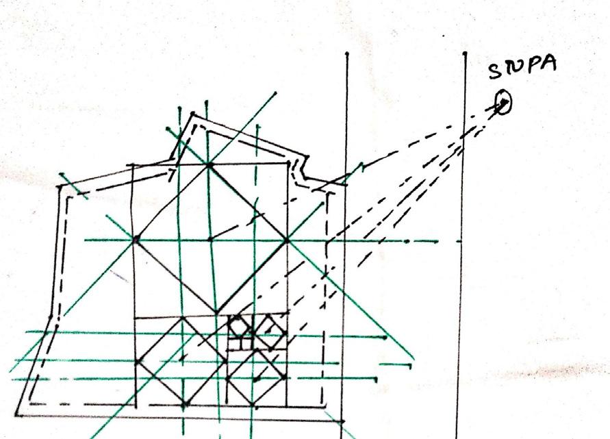Step 2 : Refrence line generating from stupa towards golden ratio geometry