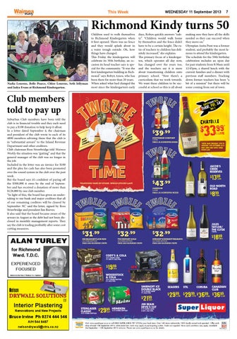 Club members told to pay up Suburban Club members have been told the club is in financial trouble and they each need to pay a $100 donation to help keep it afloat. In a letter dated September 4, the chairman and president of the club wrote to each of its 4800 members advising them that the club is in “substantial arrears” to the Inland Revenue Department and other creditors. Club chairman Ross Strawbridge told Waimea Weekly the situation was “gutting” and that the general manager of the club was no longer in the job. Included in the letter was an invoice for $100 and the plea for cash has also been promoted over the sound system in the club over the past week. But the board says it’s confident of paying off the $300,000 it owes by the end of September and has received a donation of more than $128,000 by one club member. “In light of this, the board has given an undertaking to our bank and major creditors that all of our remaining creditors will be cleared by September 30,” said the letter, signed by Ross Strawbridge and president Jim Reeves. It also said that the board became aware of the arrears in August as the debt had not been disclosed in monthly management reports. They say the club is trading profitably after some cost cutting measures.