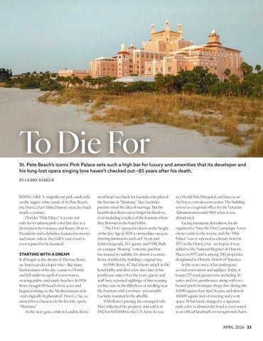 RISING LIKE A magnificent pink sandcastle on the sugary white sands of St. Pete Beach, the Don CeSar’s fabled history stretches back nearly a century.