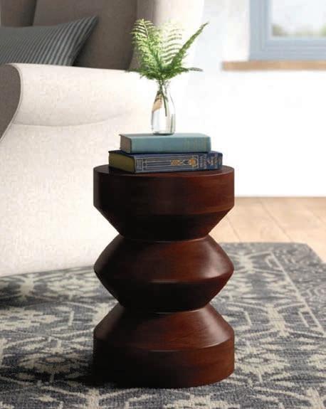 Wood pieces in a deep brown hue enjoy the spotlight.
