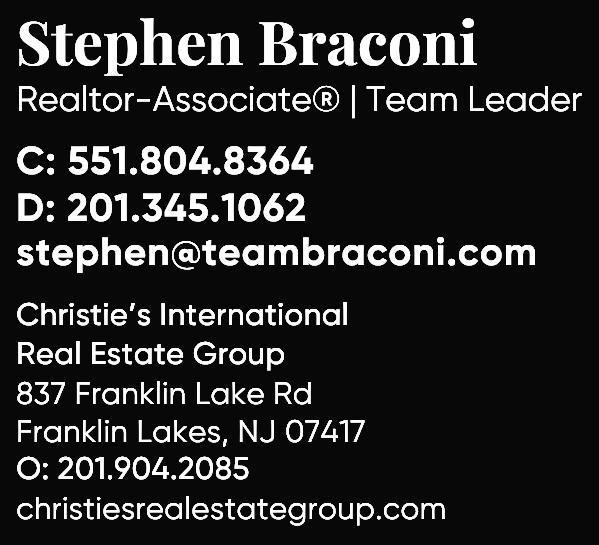 This issue goes beyond fashion, of course. “Your Attention, Please” on page 42 deserves your attention—and please don’t stop reading in mid-article to do something else. In Escapes on page 68, we highlight five travel destinations where hip music festivals are being held in the coming weeks. These are cool, compelling cities to visit in any case—how nice to have a timely musical excuse to visit each! Our Special Report on page 60 details the shrinking history of farming in Bergen. A few agricultural operations still prosper here, and for many reasons we want to preserve them for tomorrow’s kids—and “farm-to-table” diners. On page 36, meet John Pecoraro, first responder par excellence, who’s spent half a century serving his community by rescuing people in emergencies. Finally, see on page 64 how a HoHo-Kus kitchen was remodeled and beautified—for clients who happily had no fear of bold colors.