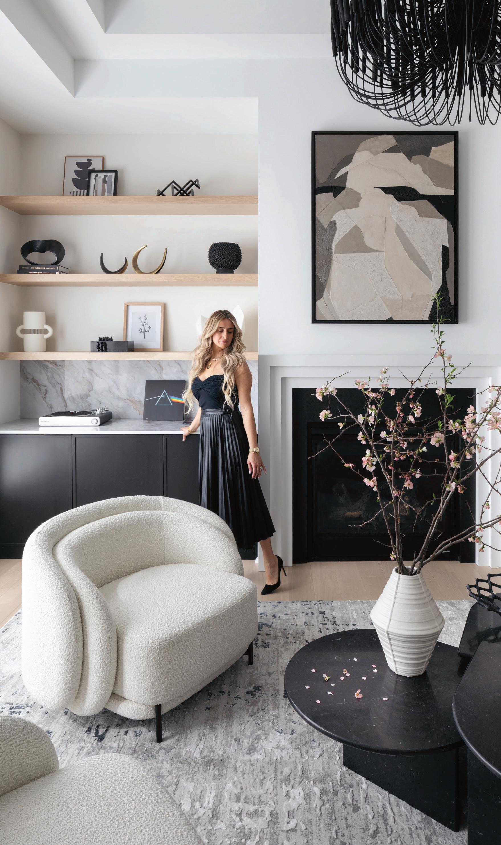 Interior designer Elizabeth Ego brought warmth to a newly constructed home in Woodcliff Lake by using a minimalist, black-and-white motif. Photo by Raquel Langworthy.