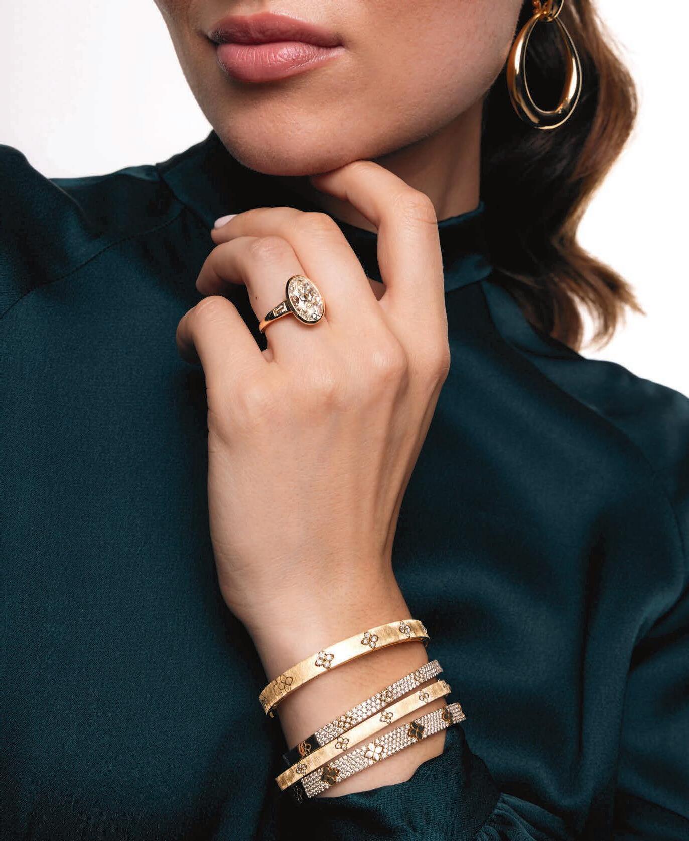 From the elegance of the Art Deco era to the bold glamour of the 1980s, gold has cycled through periods of quiet retreat and brilliant resurgence. While trends have shifted (from white metals to rose tones and back again), gold has never truly left. Its presence endures, not as a trend, but as a reflection of something essential. Its glow speaks to authenticity, to heritage, to the kind of beauty that doesn’t need to shout, but still speaks volumes.