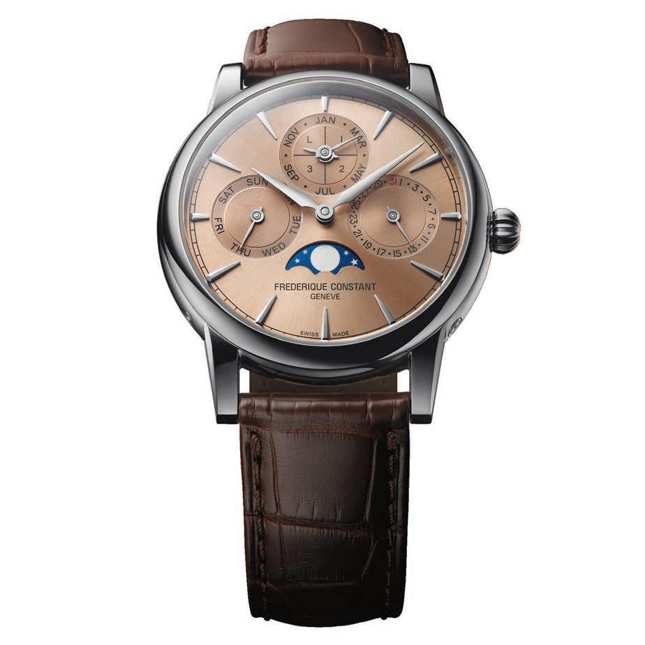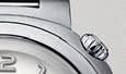 Adding to its extensive range of everyday complications, Patek has also introduced the Calatrava 5328G-001, which features instantaneous day (in an aperture) and date (by hand) displays at 6 o’clock as well as an eight-day power reserve at 12 o’clock. To accomplish these technological feats, Patek created an entirely new movement: the manually wound 31-505 8J PS IRM CI J caliber. Melding classic construction with technological innovation and optimization, the new movement features two series-coupled barrels to ensure accurate operation for eight full days, with a ninth “reserve” day displayed in red to show the wearer that the watch needs winding. The day-date displays jump instantaneously at midnight. The 41-millimeter, white-gold case features a caseband with a guilloched hobnail pattern and a sapphire crystal caseback to view this magnificent new movement.