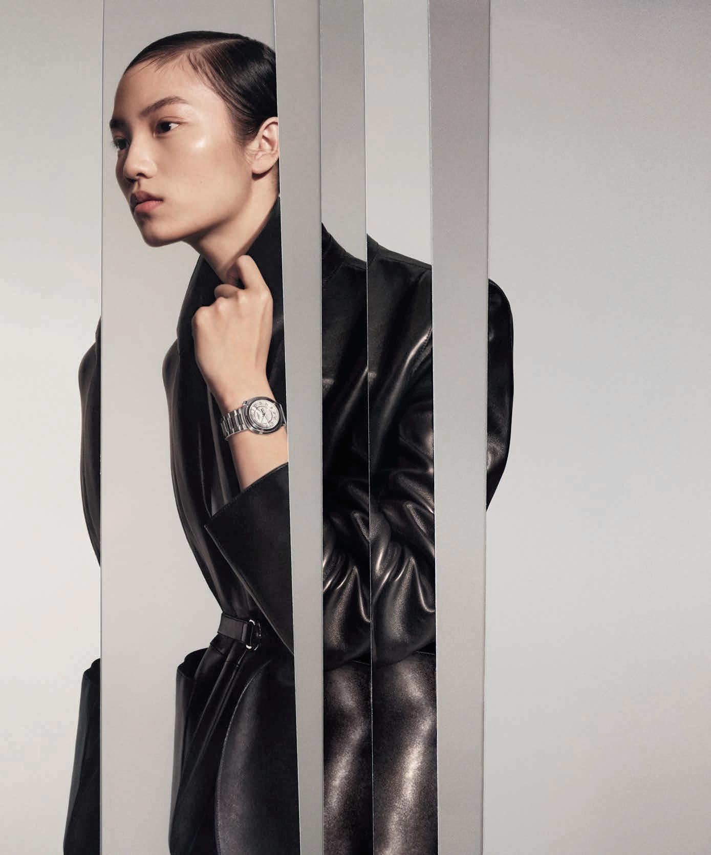 Actress Nicole Kidman, 58, grabbed the spotlight with a classic style inspired by a 1950s Harper’s Bazaar cover. She paired a re-creation of a Balenciaga gown with a vintage Ladymatic circa 1969, worn over a black spandex jersey glove. Named for the sparkling sapphire crystal on its face, the watch is crafted in 18K white gold with a black corded fabric bracelet for a timeless and sophisticated look.