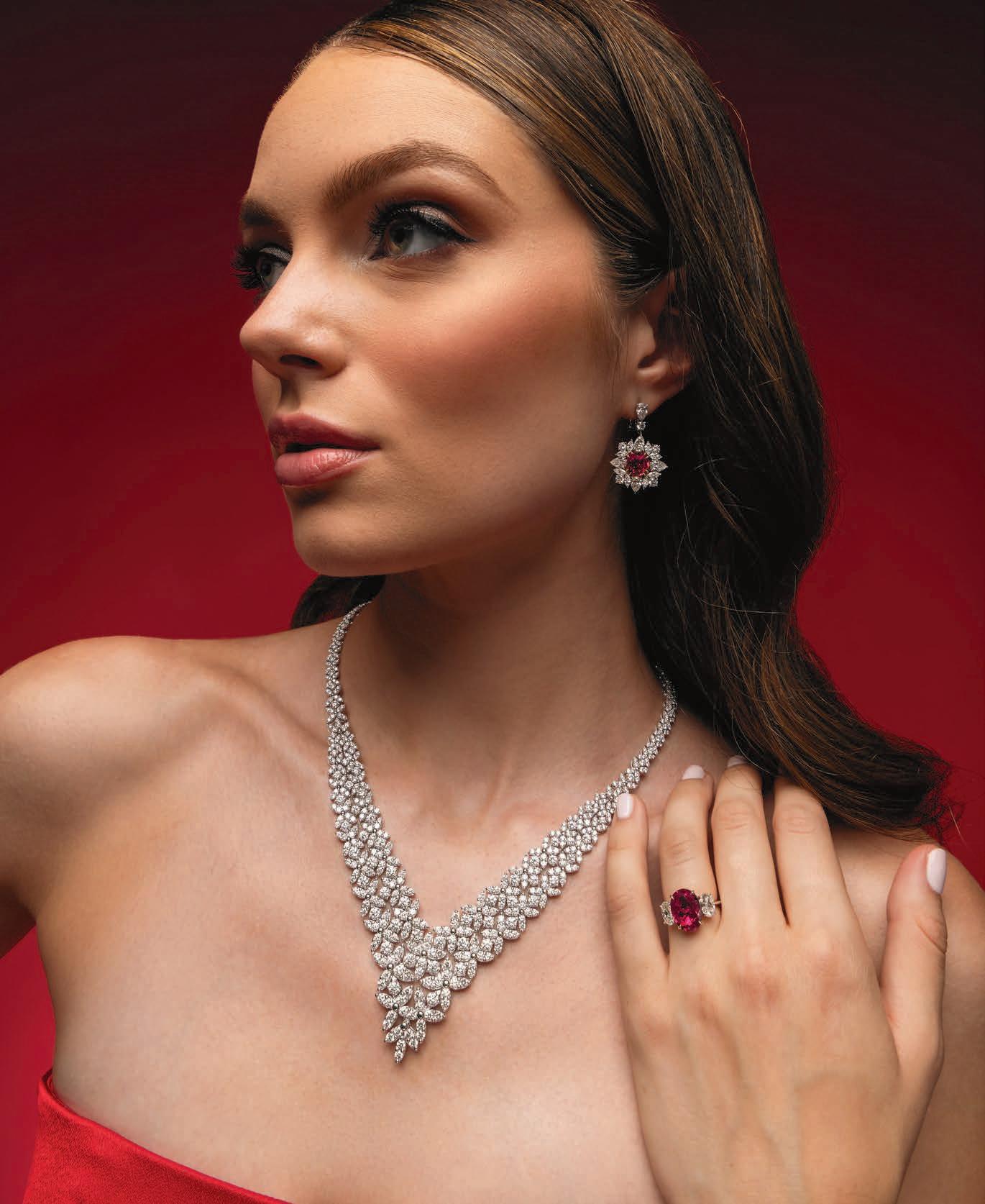 The process began in Las Vegas at the Couture Show, where our team meticulously handpicked each showstopping piece destined for this shoot. But this year, we didn’t just source jewelry, we reinvented how we present it.
