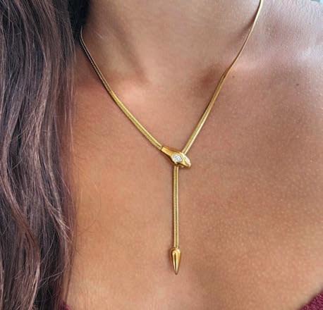 This season, the shop thinks the perfect gift for a loved one would be the Starlight Sky diamond necklace ($3,075), which is Katie Diamond’s version of a delicate statement necklace, it’s perfect for everyday wear and features 19 drilled diamonds that have no setting and float in the center of the 18K gold diamond cut ball chain. Looking for a gift at a lower price point? The Year of the Snake lariat ($88) is an iconic piece with a 1970s vibe. This goldplated piece features a herringbone chain with a pearshaped crystal set into the head of the snake.