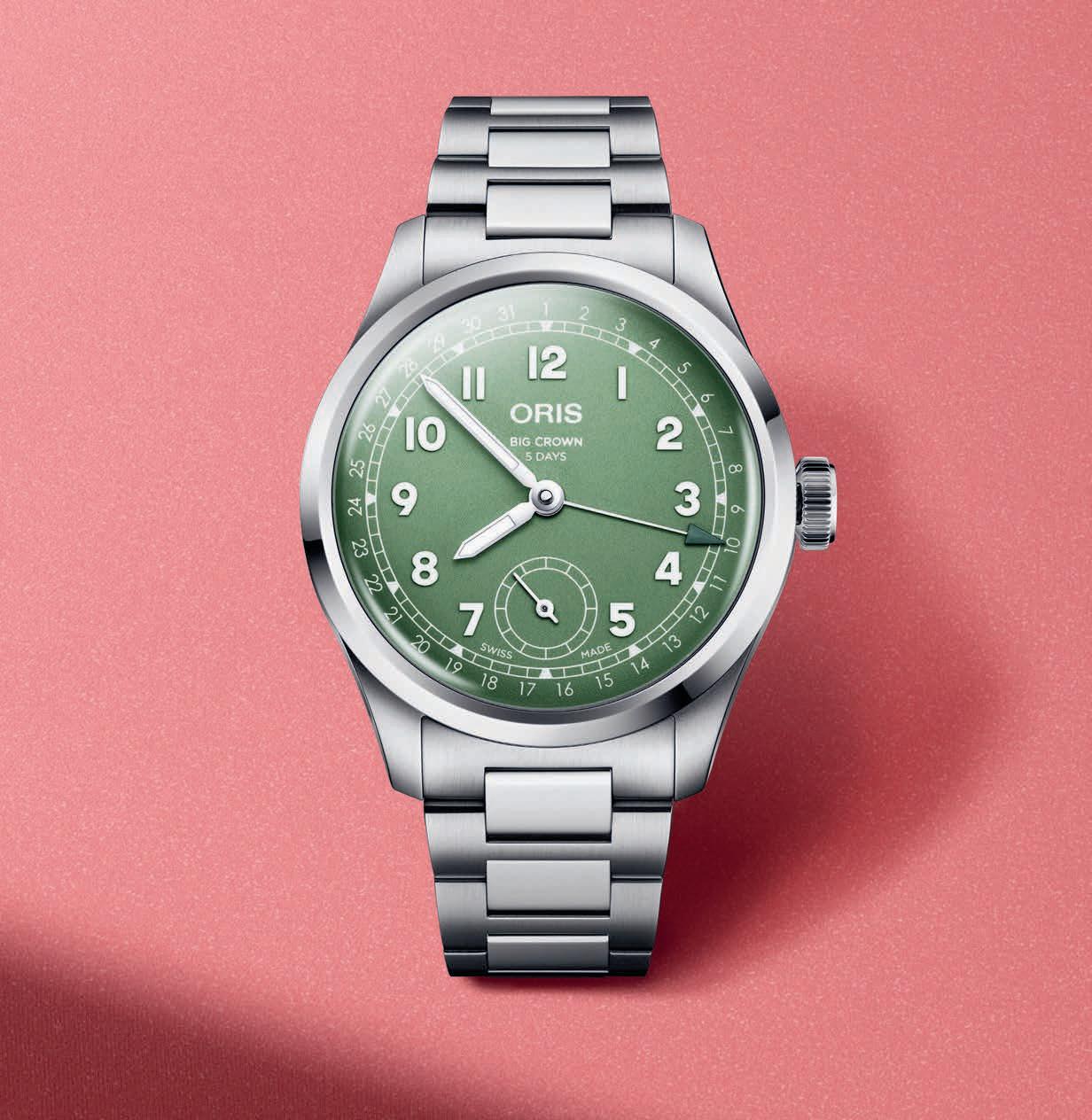 wearer can remove the watch on Friday evening and put it back on Monday morning without having to reset it. It is available on a 5- or 3-link, “rivet-style,” stainless-steel bracelet with a mix of polished and satin finishes or on a cut-to-size black rubber strap. All three close with the Tudor “T-fit” clasp. The Black Bay 58 in burgundy begins at $4,400.