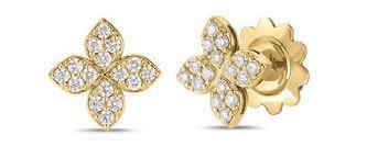 18K Yellow Gold Love In Verona Diamond Flower Circle Necklace, $ 7,430; 18K Yellow Gold Jasmine Pavé Diamond Butterfly Stud Earrings, $6,810; 18K Yellow Gold Love In Verona Medium Pavé Diamond Flower Stud Earrings, $3,900; 18K Yellow Gold Love By The Inch Diamond and Polished Flower Station Necklace, $3,990; 18K Yellow Gold Love In Verona Medium Pavé Diamond Flower Ring, $3,050; 18K Yellow/White Gold Cobra Diamond and White Enamel Bangle, $24,750; 18K Yellow Gold Principessa Diamond & Flower Station Bracelet, $1,670; 18K Yellow/White Designer Gold Diamond Link Chain Bracelet, $5,270; 18K Yellow Gold Principessa Diamond and Flower Station Dangle Earrings, $ 2,300.