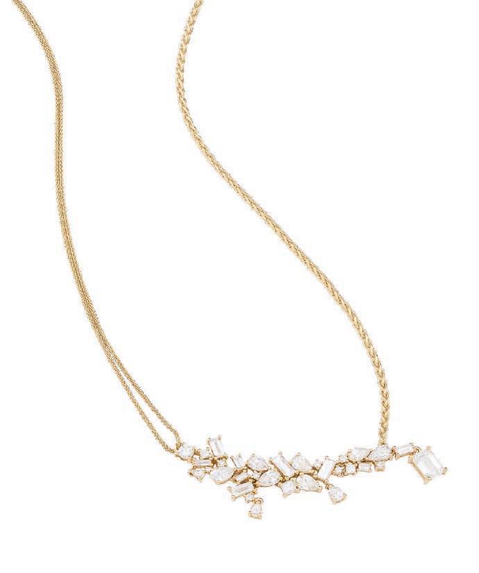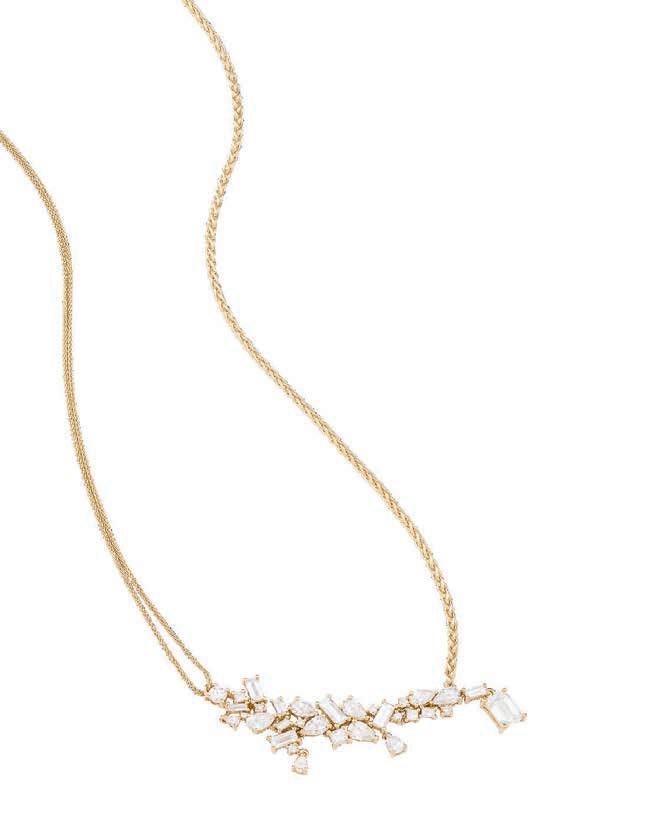 Gold Lunaria Twist Long Necklace, $8,200; 18K Yellow Gold Lunaria Twist Lariat with Diamonds, $6,000; 18K Yellow Gold Lunaria Bracelet with Diamonds, $5,700; 18K Yellow Gold Lunaria Split Cuff with Diamonds, $16,250; 18K Yellow Gold Lunaria Twist Drop Earrings with Diamond Hook, $1,890.