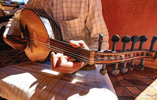 From top: The varied architecture of Amman ranges from modern buildings with glass towers to older, smaller homes that, from a distance, appear as if they were built with Legos. The streets of the capital city are filled with shops, markets and vendors, many of whom sell fresh fruit, such as pomegranate, that’s ready to enjoy. Bedouins add to the charm of street life, often playing ouds, pear-shaped string instruments that resemble guitars.