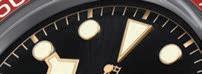 With proportions characteristic of mid-century design and a style meant to evoke the glamour of the jet age, the Black Bay 58 GMT is an entirely new model in the Black Bay line. Slightly smaller than the 41-millimeter Black Bay GMT but just as robust, the 58 GMT is 39 millimeters in diameter, with a slim profile at 12.8 millimeters. Its bidirectional, rotatable steel with a burgundy-and-black, anodinsert with a gilt 24-hour scale. The black dial also features gilt-applied hour coordinating snowflake hour and minute 24-hour hand and a lollipop second hand, with Grade A Swiss Super-Luminova luminescent material for maximum legibility.